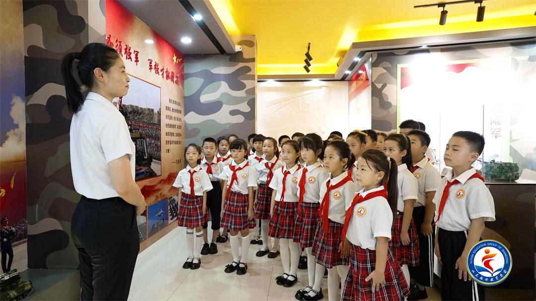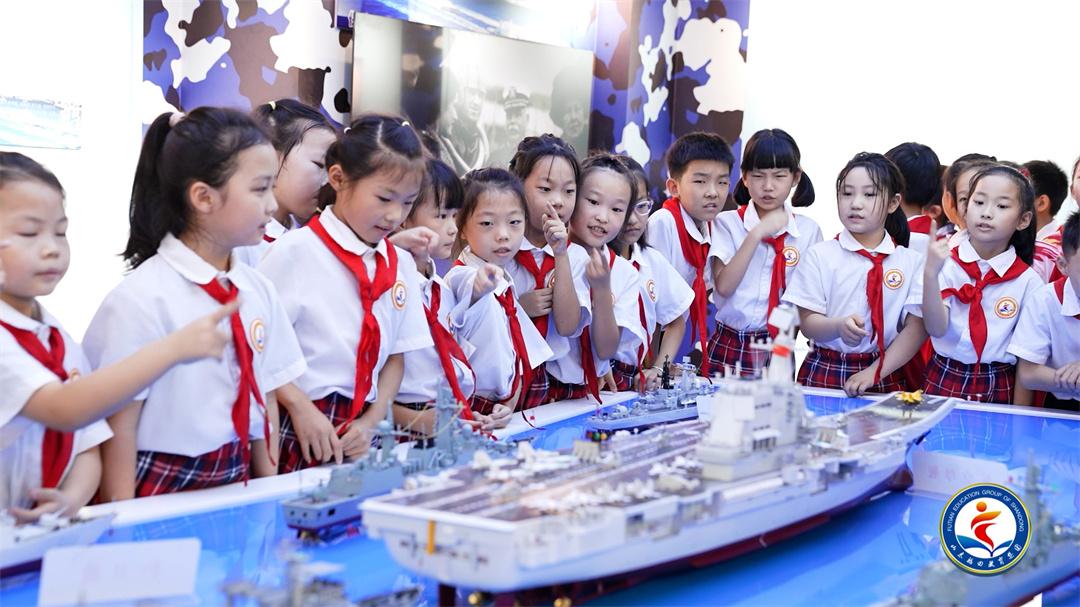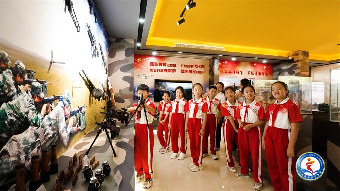 “同學(xué)們,今天讓我們親身感受我國(guó)國(guó)防事業(yè)的發(fā)展和強(qiáng)大?!备L飳?shí)驗(yàn)學(xué)校小學(xué)部學(xué)生在老師帶領(lǐng)下接受國(guó)防教育。學(xué)生們聽著老師的講解,觸摸著槍械、坦克、戰(zhàn)機(jī)、航母等軍工裝備高精模型,近距離感受大沙盤實(shí)戰(zhàn)推演、多媒體場(chǎng)景再現(xiàn),猶如身臨其境。學(xué)生們?cè)诮涣髋c互動(dòng)中,對(duì)科技的飛躍、祖國(guó)的安定、軍隊(duì)的強(qiáng)大倍感自豪。