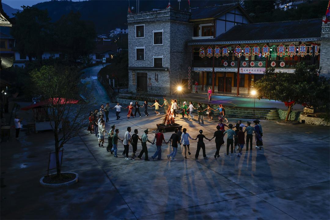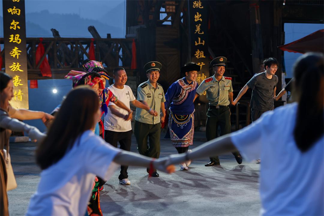 圖為武警北川中隊官兵同村民共同開展文藝活動,融洽軍民關系,促進軍地共同發(fā)展,形成獨具特色富有成效的共建模式。
