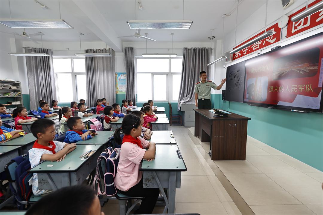 圖為武警北川中隊赴駐地小學開展“愛國主義教育進校園”主題活動。