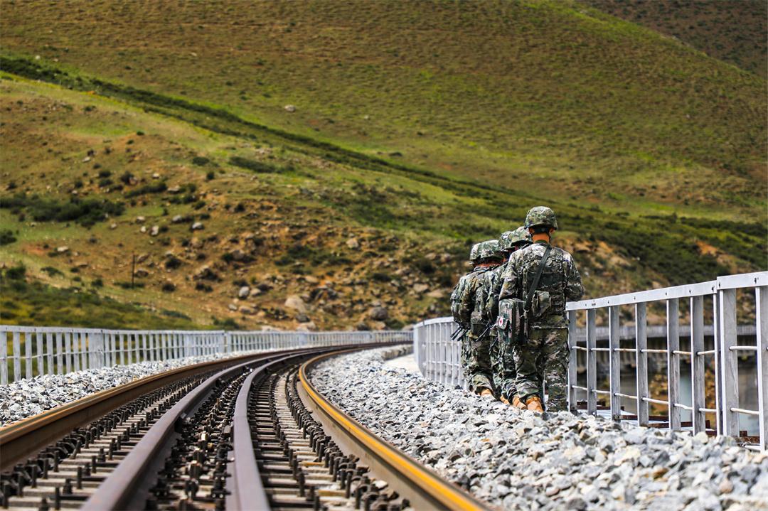 青藏鐵路是西藏連接內(nèi)地最重要的生命線。守護(hù)這條“天路”的武警西藏總隊(duì)拉薩支隊(duì)執(zhí)勤八大隊(duì)官兵,在一列列火車鳴響的汽笛聲中,對這條幸福路、發(fā)展路、團(tuán)結(jié)路有著更為深刻的感悟。他們守護(hù)的不僅是鐵路,而是西藏經(jīng)濟(jì)社會(huì)發(fā)展的大動(dòng)脈。