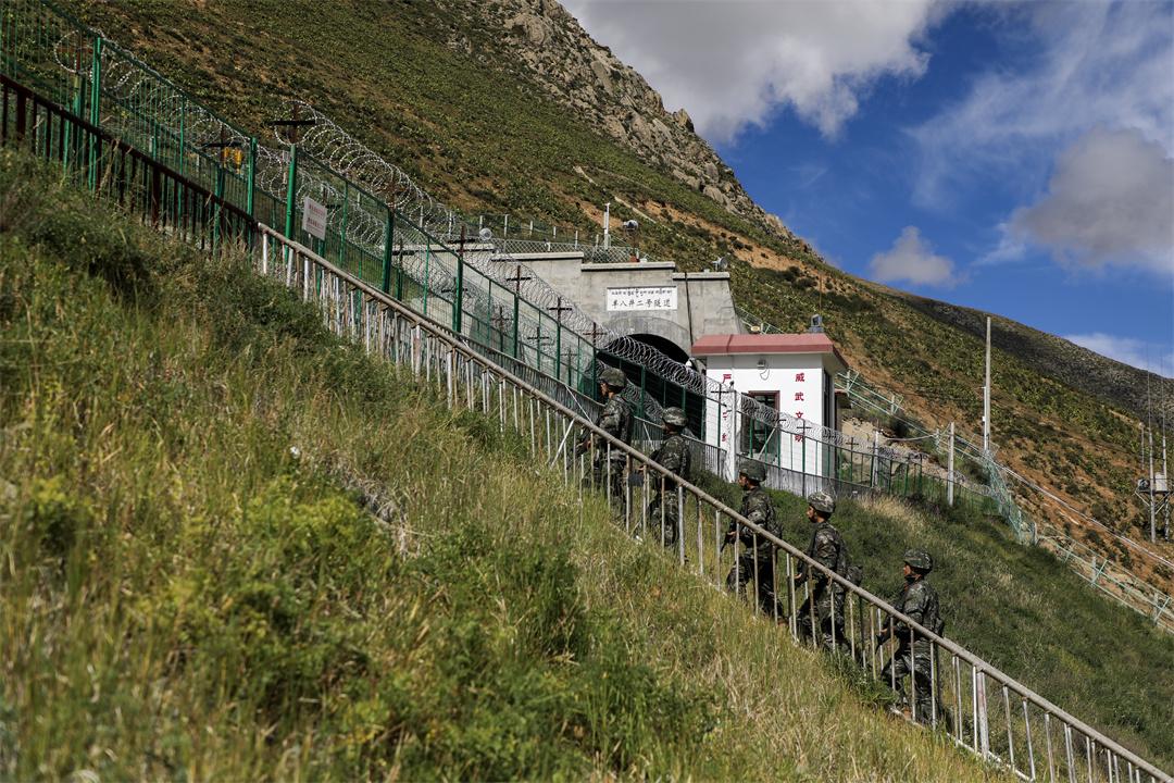 圖為武警西藏總隊(duì)拉薩支隊(duì)執(zhí)勤八大隊(duì)官兵“天路”巡邏。