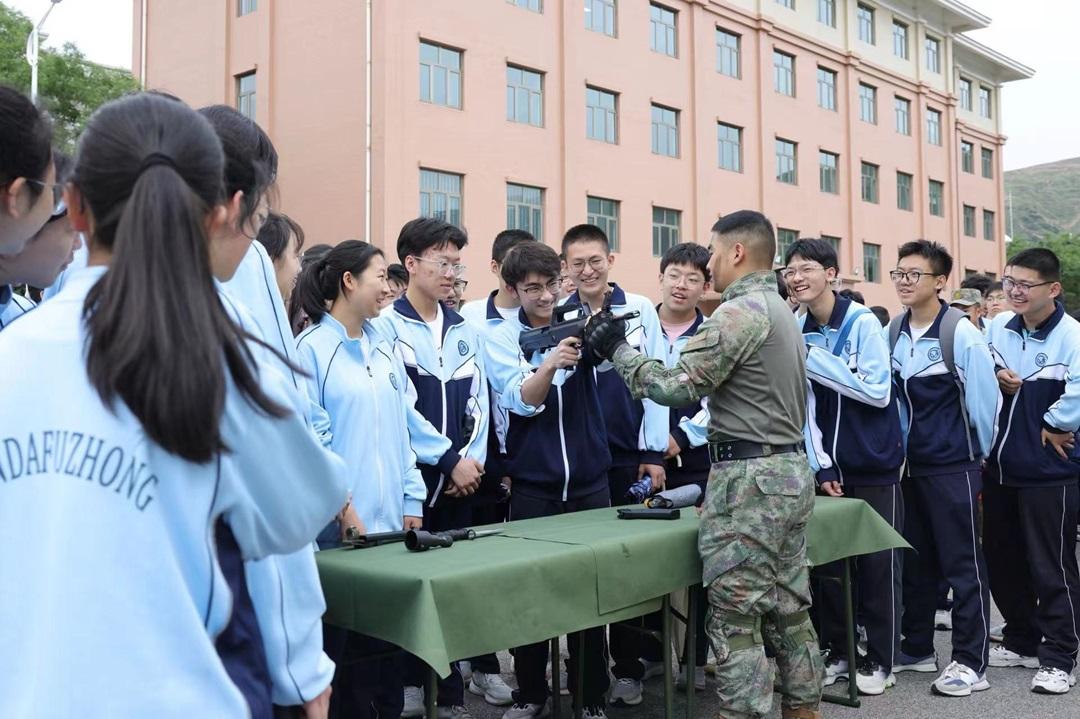 仲秋清晨,西北高原,火箭軍某部駐地中學(xué)200余名師生正在參加一場特殊的升旗儀式。活動現(xiàn)場,這批首次走進(jìn)綠色軍營的學(xué)生見到了國產(chǎn)武器裝備模型,聽到了國防教育的生動講解,一顆顆愛國愛軍的種子播撒在孩子們心里。