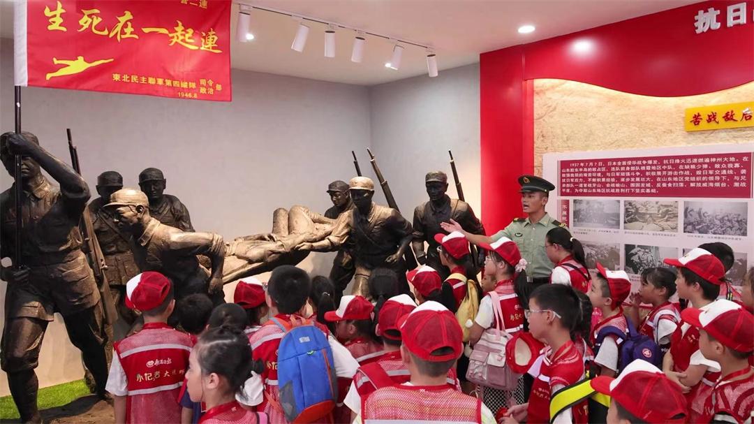圖為駐地學(xué)生參觀英模連隊(duì)“生死在一起連”榮譽(yù)室。謝亦帆 攝