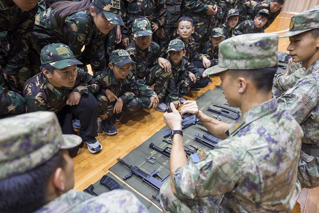 圖為武警廣東總隊(duì)開展“同心同行·強(qiáng)國有我”港澳青少年進(jìn)軍營活動,港澳青少年參觀武器裝備。劉佳良 金家威 攝