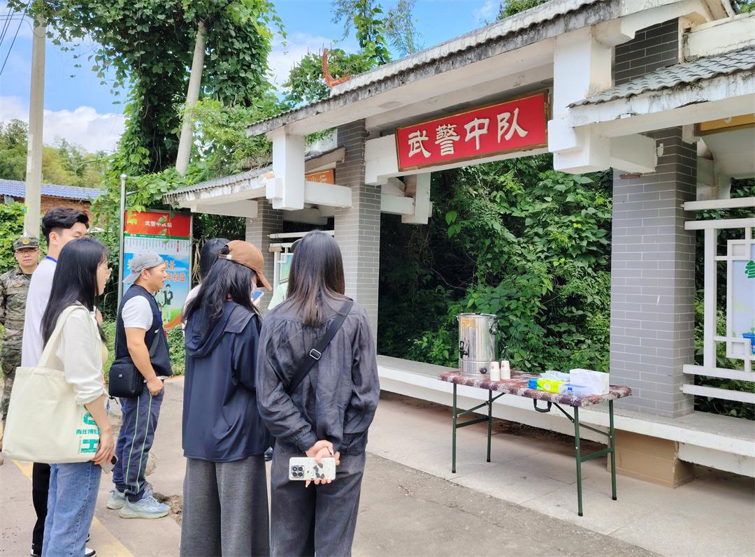 圖為媒體記者走進(jìn)“武警中隊公交站”便民點(diǎn)。沈少敏 攝