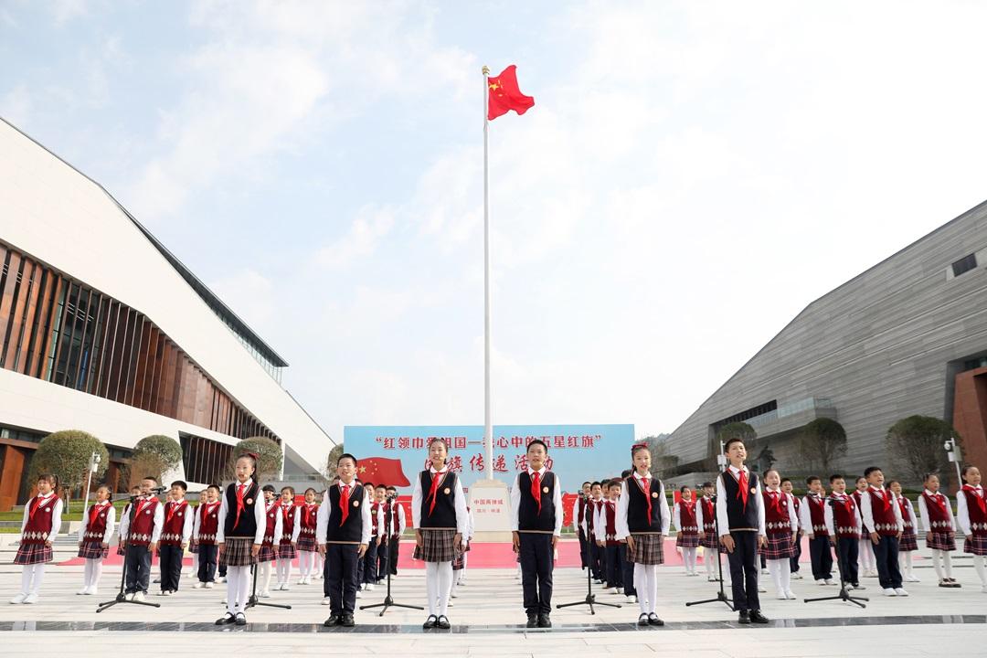 10月16日,“紅領(lǐng)巾愛祖國——我心中的五星紅旗”國旗傳遞活動(dòng)在四川省綿陽市梓潼縣中國兩彈城舉行。共青團(tuán)四川省委、四川省少工委、共青團(tuán)綿陽市委、綿陽市教育局、綿陽市少工委、中共梓潼縣委、梓潼縣人民政府、四川兩彈一星干部學(xué)院、中國工程物理研究院團(tuán)委等相關(guān)部門同志以及綿陽市中小學(xué)少先隊(duì)員、少先隊(duì)輔導(dǎo)員代表500余人參加活動(dòng)。