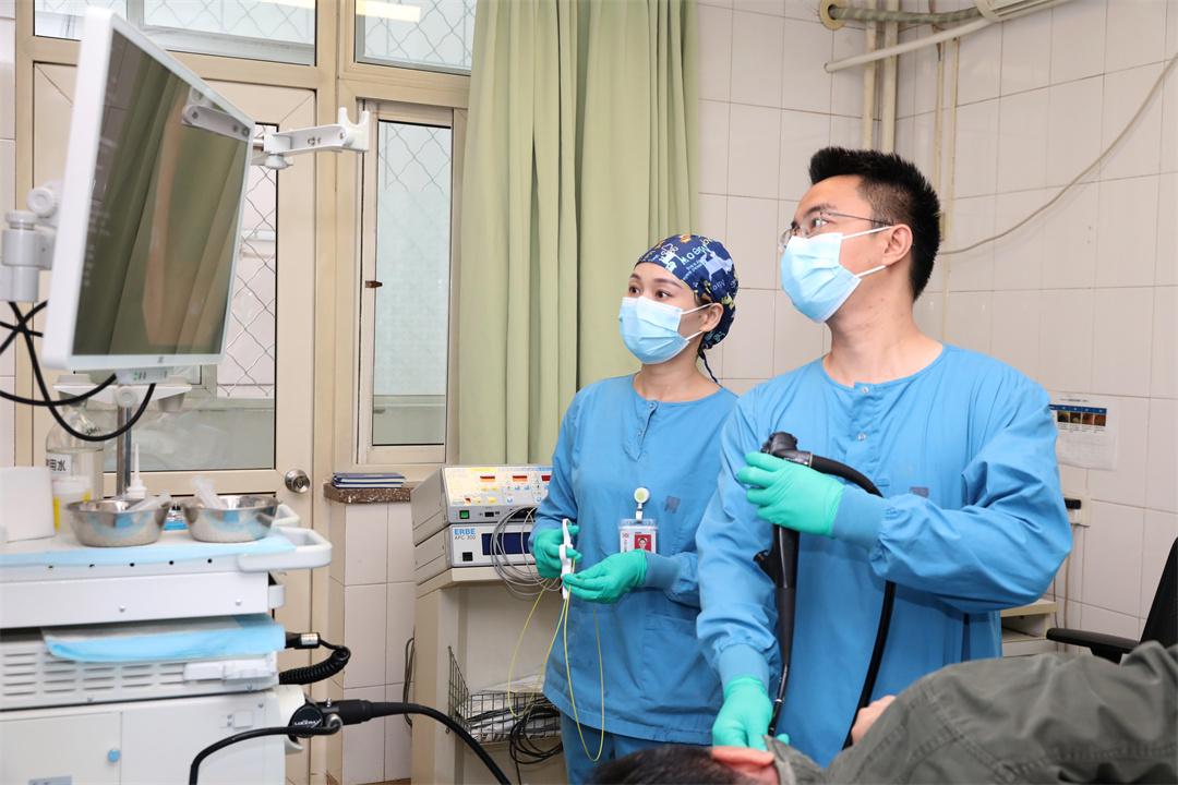 圖為解放軍總醫(yī)院第四醫(yī)學(xué)中心消化內(nèi)科陳超主任(右)和內(nèi)鏡室護(hù)士長(zhǎng)黃福秀(左)正在為患者進(jìn)行胃鏡檢查。鞠文富 攝