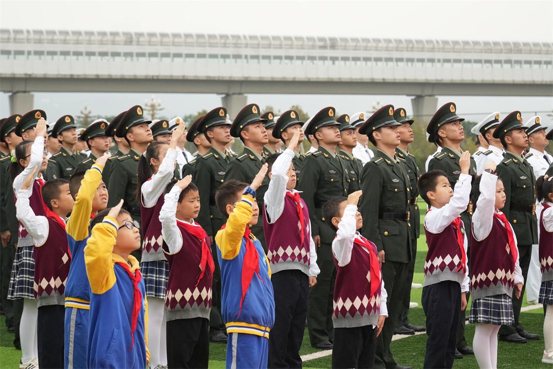 升旗儀式開始前,五星紅旗由少先隊(duì)員代表組成的“紅領(lǐng)巾護(hù)旗手”方隊(duì)傳遞至由航天科技集團(tuán)七院重慶航天職業(yè)技術(shù)學(xué)院共青團(tuán)員軍士生組成的國(guó)旗護(hù)衛(wèi)隊(duì)。伴隨著雄壯激昂的國(guó)歌,鮮艷的五星紅旗冉冉升起。