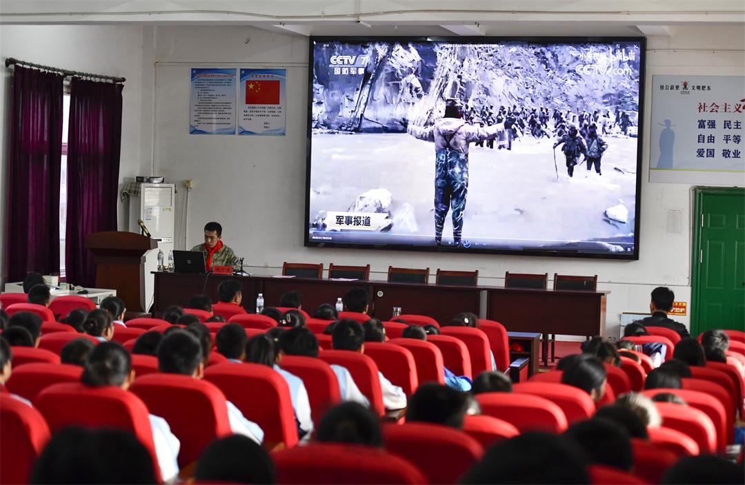 圖為在肥東縣長臨河學(xué)校中心小學(xué),孩子們聆聽英雄故事。