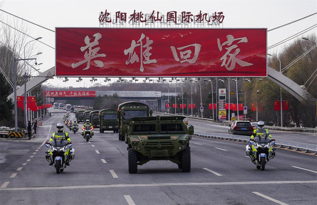 12時07分,空軍專機運-20緩緩降落在遼寧沈陽桃仙國際機場。專機進(jìn)入中國領(lǐng)空后,空軍兩架殲-20戰(zhàn)斗機護(hù)航,并在沈陽機場上空通場,“雙20”同框向志愿軍烈士致以崇高敬意,沈陽桃仙機場以“過水門”航空最高禮儀迎接志愿軍烈士遺骸回家。
