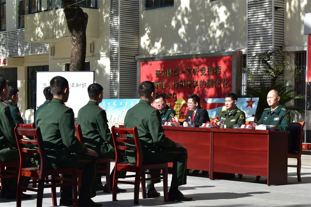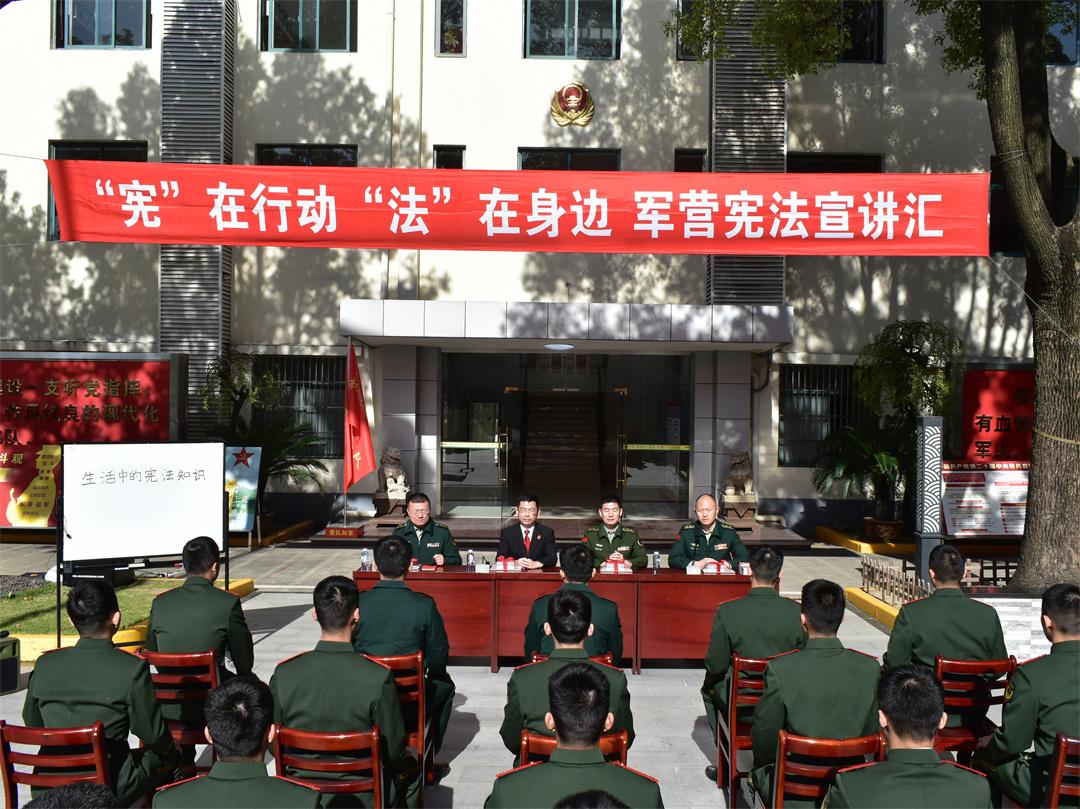 近日,上海市軍地法院法官深入駐滬部隊(duì),開(kāi)展憲法宣傳活動(dòng)。圖為在武警上??傟?duì)執(zhí)勤第一支隊(duì)某部,解放軍上海軍事法院、上海市奉賢區(qū)人民法院法官聯(lián)合開(kāi)展“‘憲’在行動(dòng) ‘法’在身邊”憲法宣講活動(dòng),軍地法官與官兵們互動(dòng)交流。