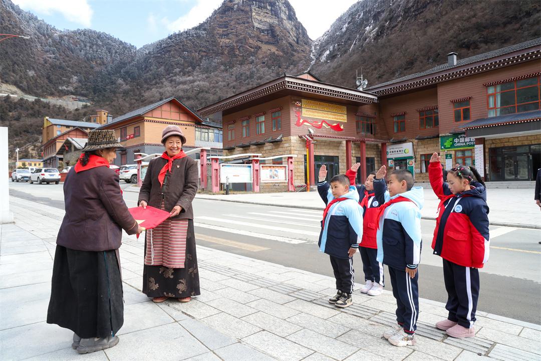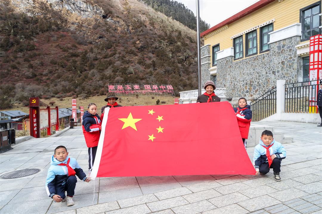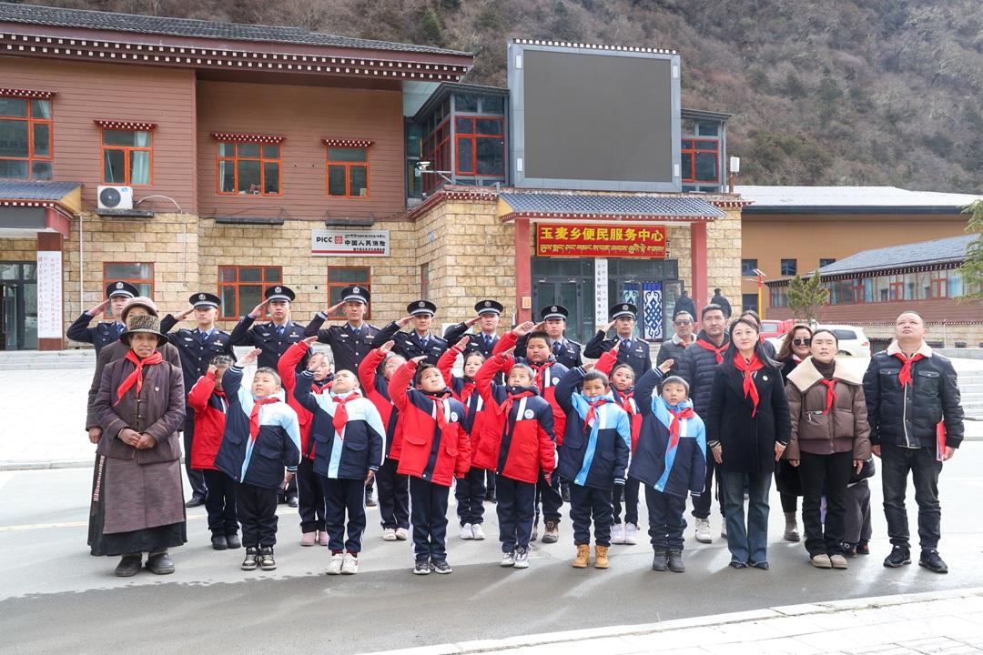 來自玉麥鄉(xiāng)小學的少先隊員和少先隊輔導員、全國“七一勛章”獲得者卓嘎、“時代楷?!鲍@得者央宗以及榮獲全國第二批“楓橋式公安派出所”的玉麥鄉(xiāng)邊境派出所民警共計30余人齊聚一堂,共同見證了這一激動人心的時刻。