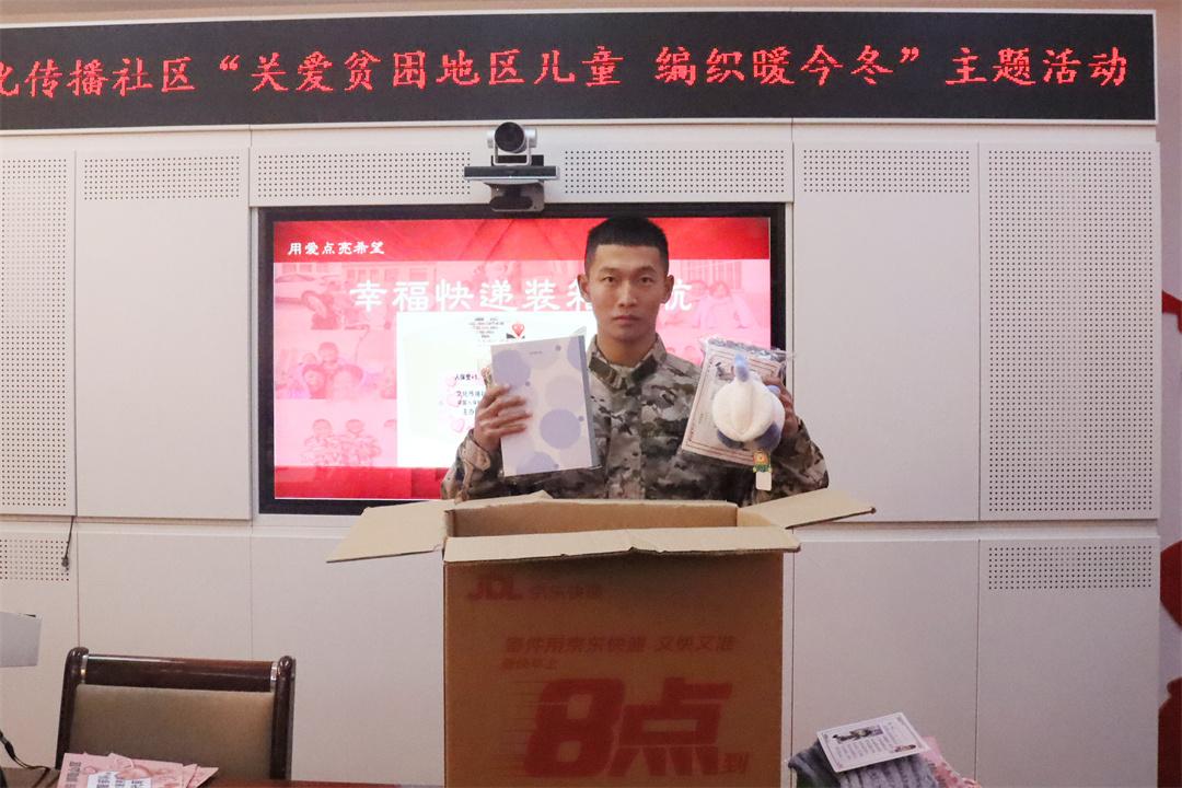 圖為武警官兵將禮物打包封箱。
