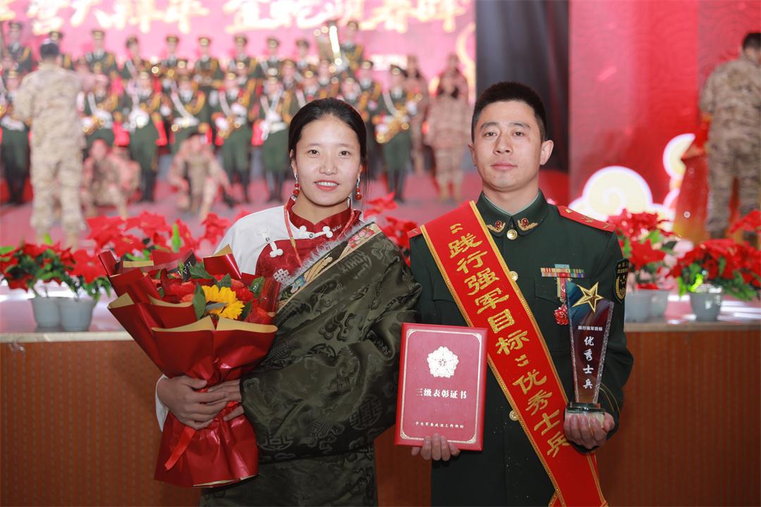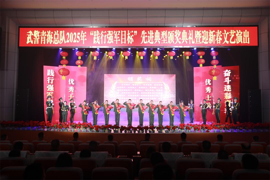 節(jié)目間隙還穿插了武警青海總隊2025年“踐行強軍目標”先進典型頒獎環(huán)節(jié),總隊首長分別為8名警官、10名士兵和2名文職人員頒發(fā)“踐行強軍目標”優(yōu)秀個人榮譽。一年來,在總隊黨委的堅強領導下,官兵們堅定信心、團結奮進、凝心聚力、勇?lián)姑楷F(xiàn)出很多先進典型和模范。