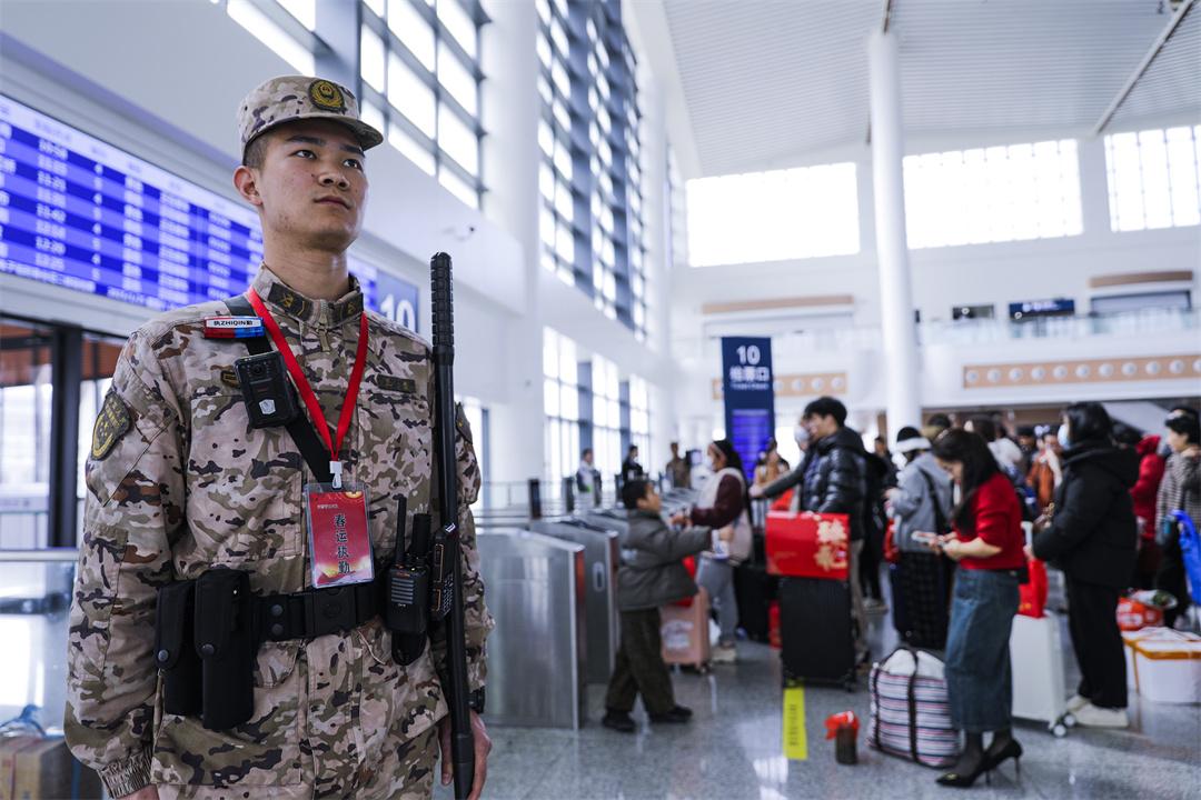 圖為武警官兵在檢票口執(zhí)勤。江偉捷 攝