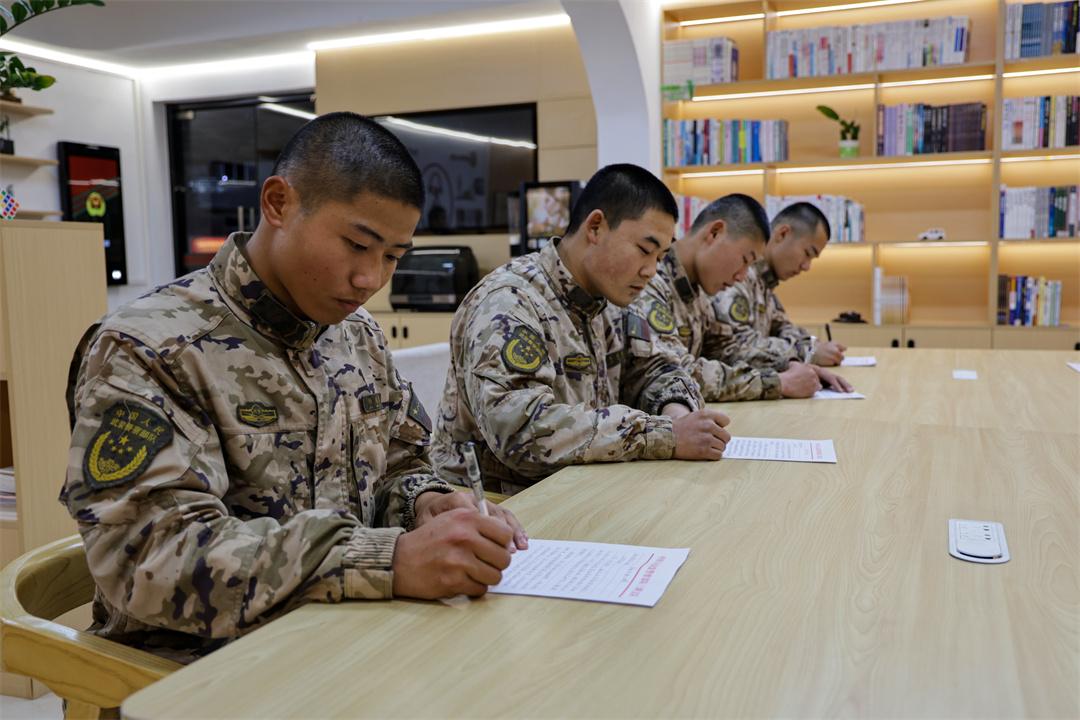 圖為武警官兵撰寫家信。王康漢 攝