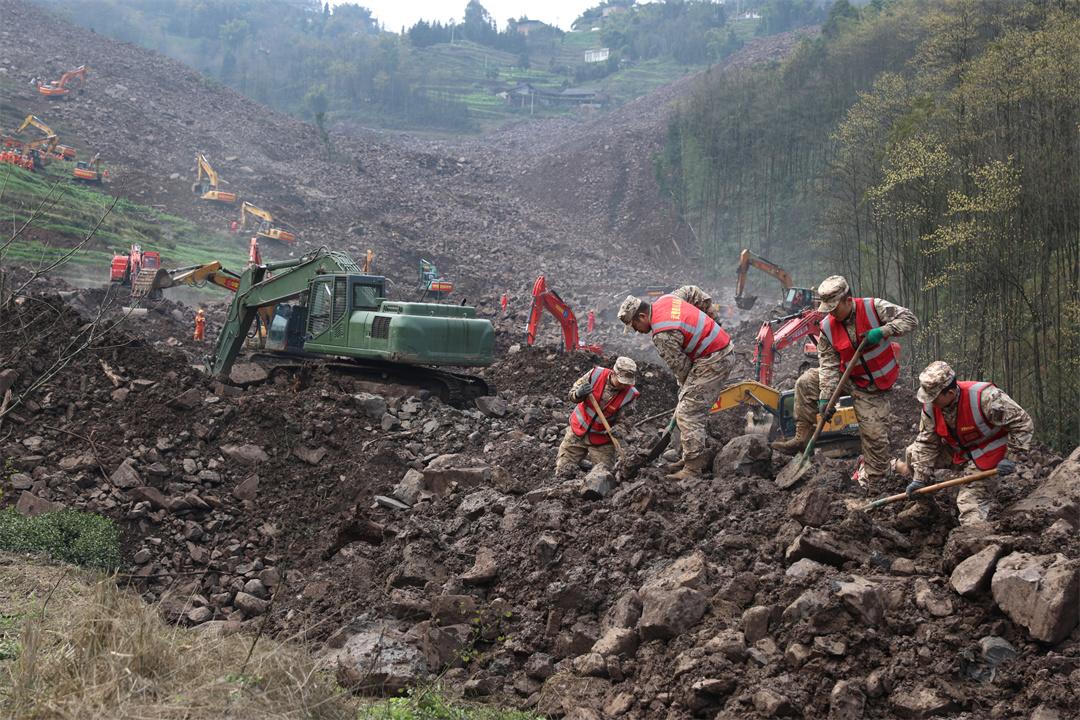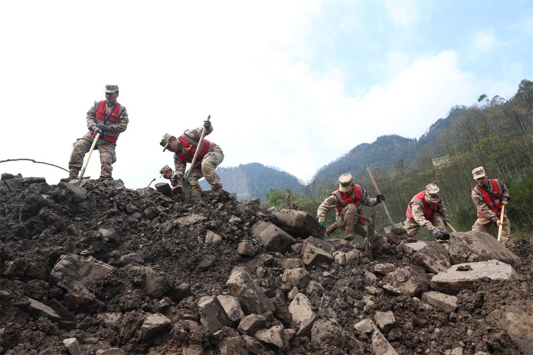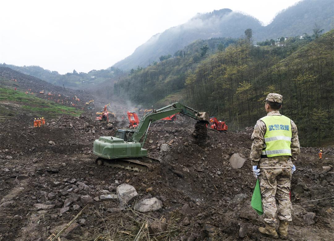 2月8日11時50分許,四川省宜賓市筠連縣沐愛鎮(zhèn)金坪村發(fā)生山體滑坡。圖為2月10日,武警第二機動總隊某支隊與武警四川總隊宜賓支隊官兵協同配合,利用大型救援裝備在筠連縣山體滑坡現場搜救失聯人員。