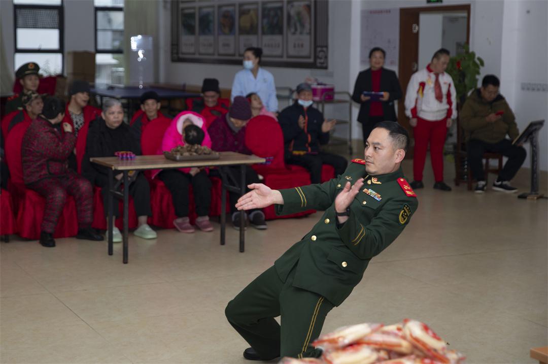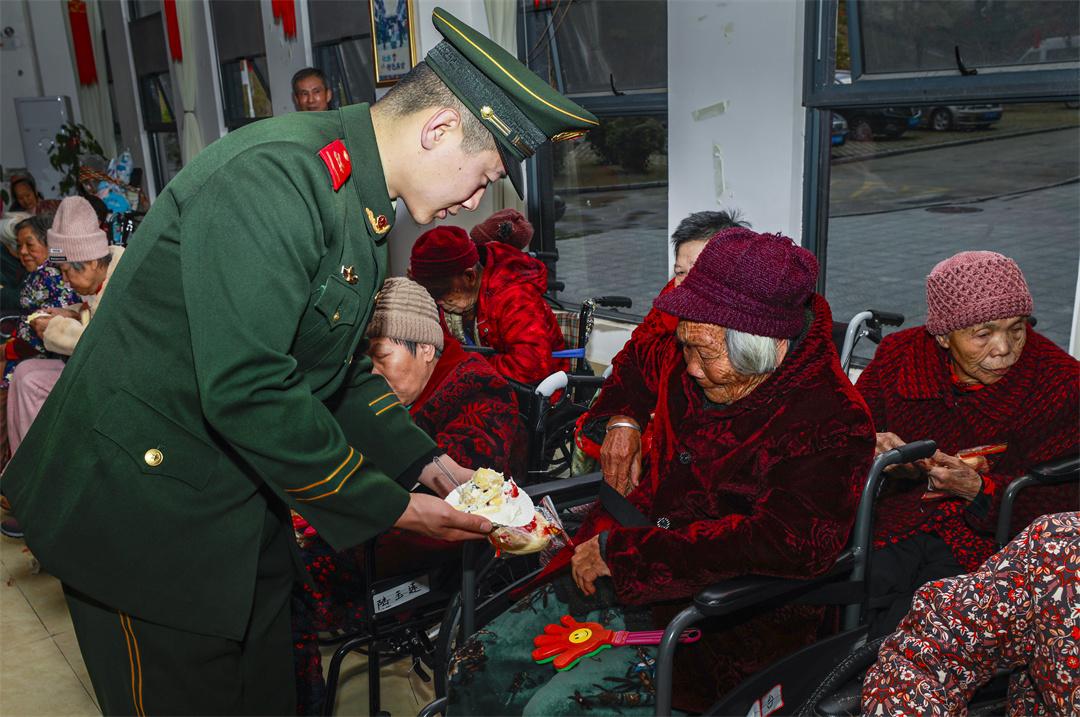 活動期間,官兵們陪老人一起過集體生日,為他們送上隊列演示、軍歌合唱以及舞蹈表演等節(jié)目,現(xiàn)場歡聲笑語不斷。集體生日結束后,官兵們立即忙活起來,幫助老人理發(fā)、量血壓、整理內(nèi)務衛(wèi)生,陪著老人下棋、拉家常等,用真誠和溫暖為老人們送去愛心。