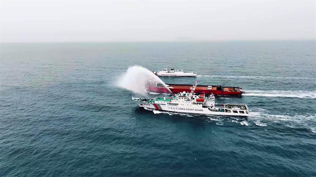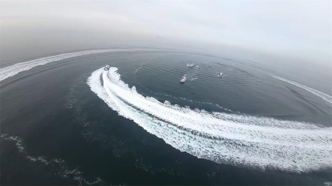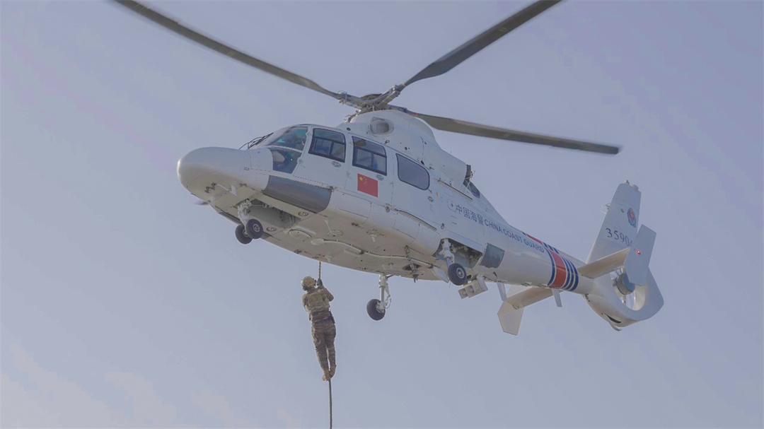 最刺激的當(dāng)數(shù)“甲板突襲”現(xiàn)場:執(zhí)法員從直升機(jī)索降而下,快艇同時(shí)抵近包抄,水炮精準(zhǔn)壓制目標(biāo)船舵機(jī),整套動(dòng)作行云流水。