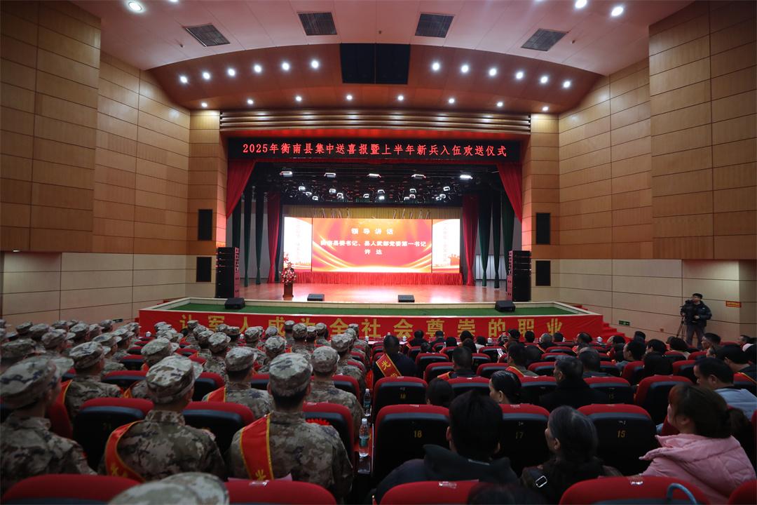 3月14日,湖南省衡陽(yáng)市衡南縣舉辦歡送預(yù)定新兵活動(dòng),邀請(qǐng)17名立功軍屬與127名入伍新兵家屬齊聚一堂。軍地領(lǐng)導(dǎo)分別為他們頒授匾牌和光榮之家軍屬牌。
