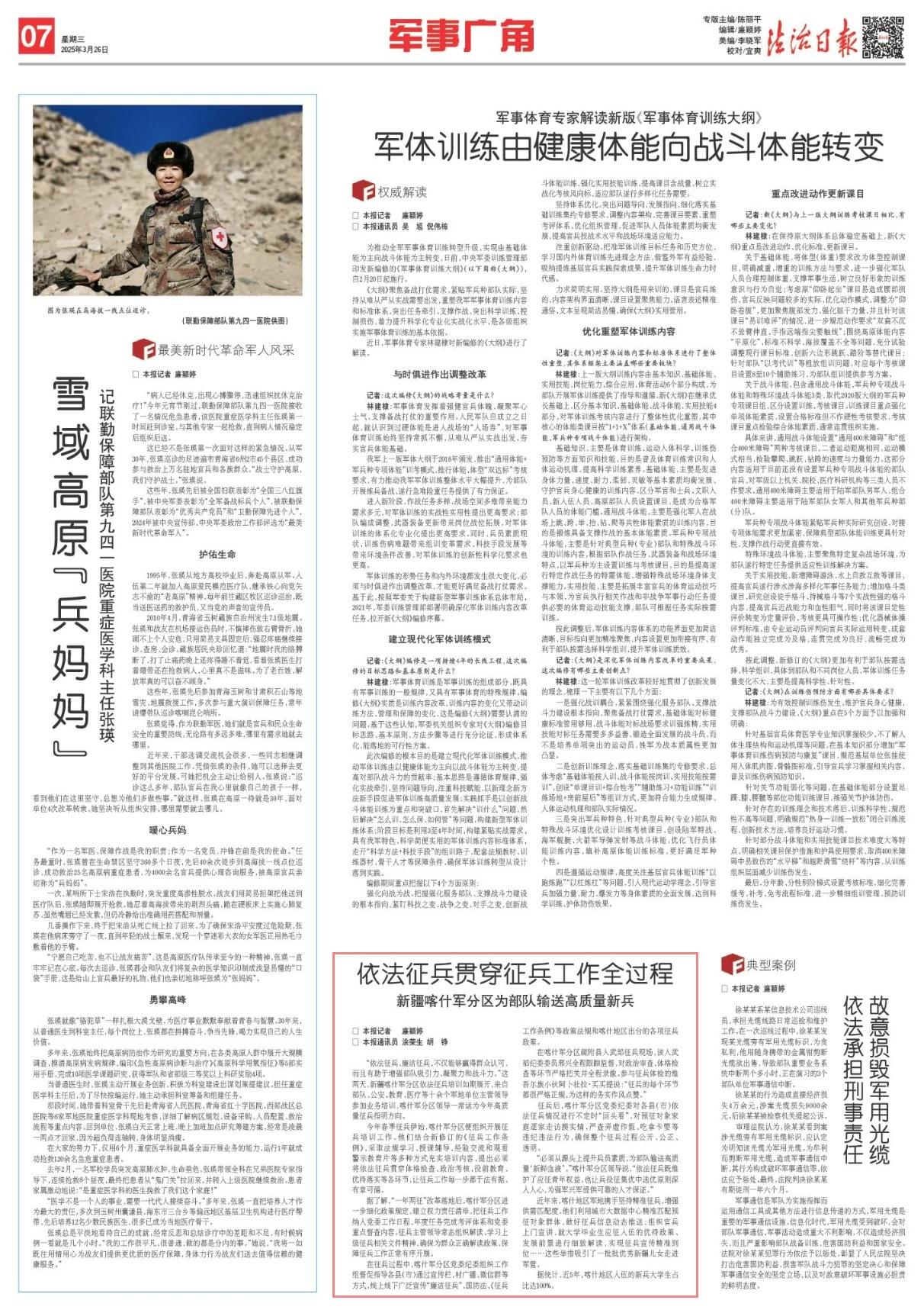 “必須從源頭上提升兵員素質(zhì),為部隊(duì)輸送高質(zhì)量‘新鮮血液’?!笨κ曹姺謪^(qū)領(lǐng)導(dǎo)說,“依法征兵既維護(hù)了應(yīng)征青年權(quán)益,也讓兵役征集優(yōu)中選優(yōu)原則深入人心,為強(qiáng)軍興軍提供可靠的人才保證。”