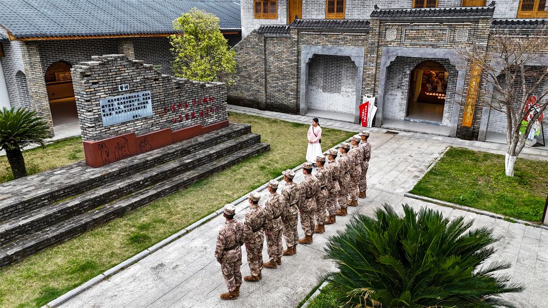“少年有志報(bào)神州,一萬(wàn)虎犢帶吳鉤?!痹谥醒肷倌昙t軍文旅小鎮(zhèn)講解員黃欣的吟誦聲中,全體人員踏上重走紅軍路的征程。