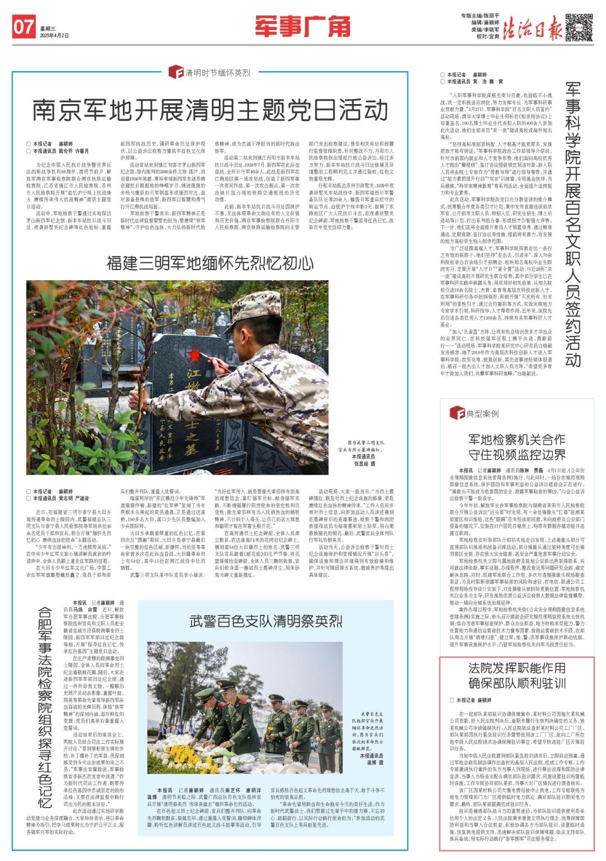駐訓是錘煉部隊戰(zhàn)斗力的重要途徑,為部隊駐訓提供便利是單位和個人的法定義務。人民法院秉承善意文明執(zhí)行理念,統(tǒng)籌保障國防利益和當事人合法權益,積極協(xié)調(diào)各方為部隊駐訓、設置臨時設施、恢復供電提供支持,迅速解決部隊駐訓保障難題,依法支持部隊練兵備戰(zhàn),用實際行動踐行“崇軍擁軍”司法服務理念。