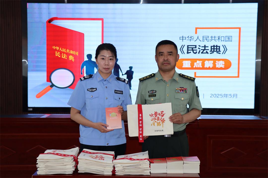 活動中,應縣司法局工作人員向該縣人武部官兵贈送民法典及普法資料100余冊,并現(xiàn)場進行法律咨詢。應縣人武部領導表示,此次活動內(nèi)容緊貼官兵需求,案例分析具有很強的針對性和指導性。