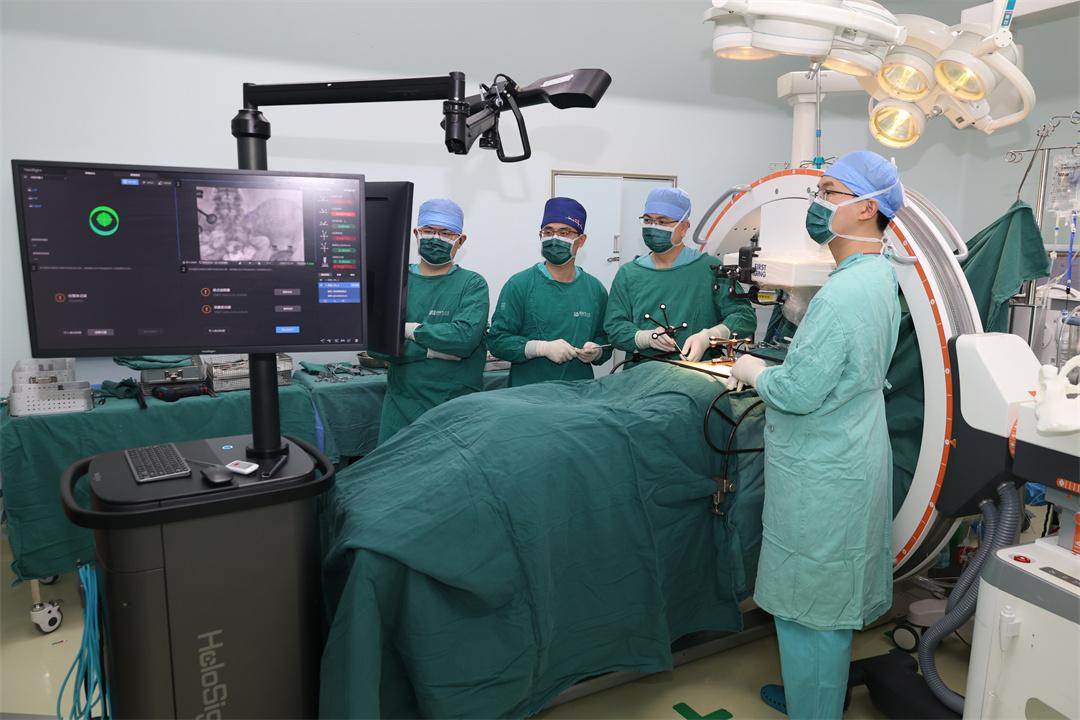 如果采取傳統(tǒng)開放手術(shù)治療,要在布滿重要血管神經(jīng)的腹股溝區(qū)開20厘米刀口,手術(shù)時間至少也要8小時,出血量預(yù)估3000毫升?;颊呤苤貏?chuàng)并手術(shù)后極度虛弱的身體難以承受,只能選擇保守治療。面對棘手病例,陳華團(tuán)隊借助先進(jìn)技術(shù)成果,運(yùn)用骨盆解鎖復(fù)位系統(tǒng)和骨科手術(shù)導(dǎo)航系統(tǒng),在僅打幾個孔的情況下可實(shí)現(xiàn)微創(chuàng)閉合手術(shù)。