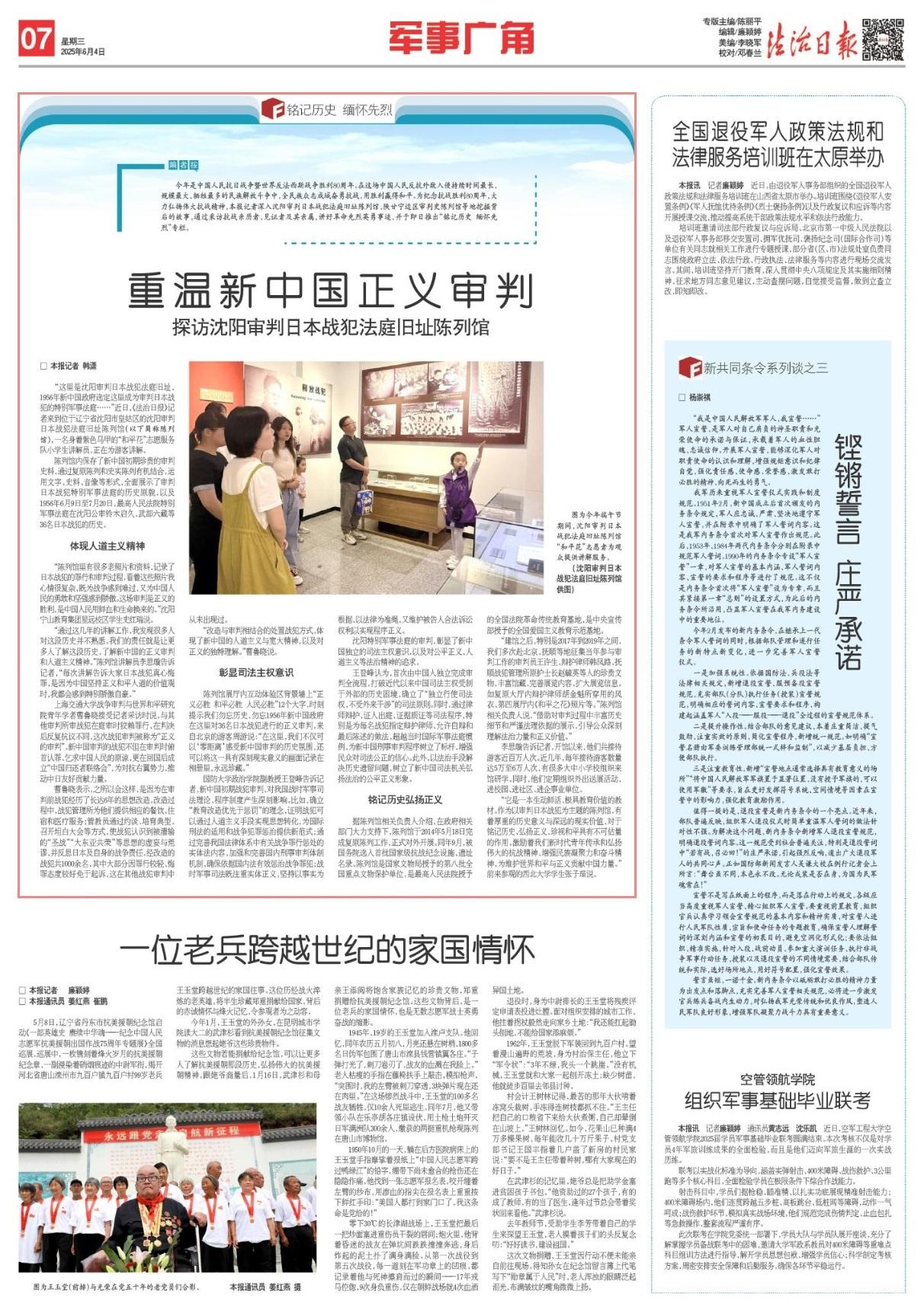 今年是中國(guó)人民抗日戰(zhàn)爭(zhēng)暨世界反法西斯戰(zhàn)爭(zhēng)勝利80周年。在這場(chǎng)中國(guó)人民反抗外敵入侵持續(xù)時(shí)間最長(zhǎng)、規(guī)模最大、犧牲最多的民族解放斗爭(zhēng)中,全民族眾志成城奮勇抗戰(zhàn),用勝利贏得和平。為紀(jì)念抗戰(zhàn)勝利80周年,大力弘揚(yáng)偉大抗戰(zhàn)精神,本報(bào)記者深入沈陽審判日本戰(zhàn)犯法庭舊址陳列館、陜甘寧邊區(qū)審判史陳列館等地挖掘背后的故事,通過采訪抗戰(zhàn)親歷者、見證者及其親屬,講好革命先烈英勇事跡,并于即日推出“銘記歷史 緬懷先烈”專欄。