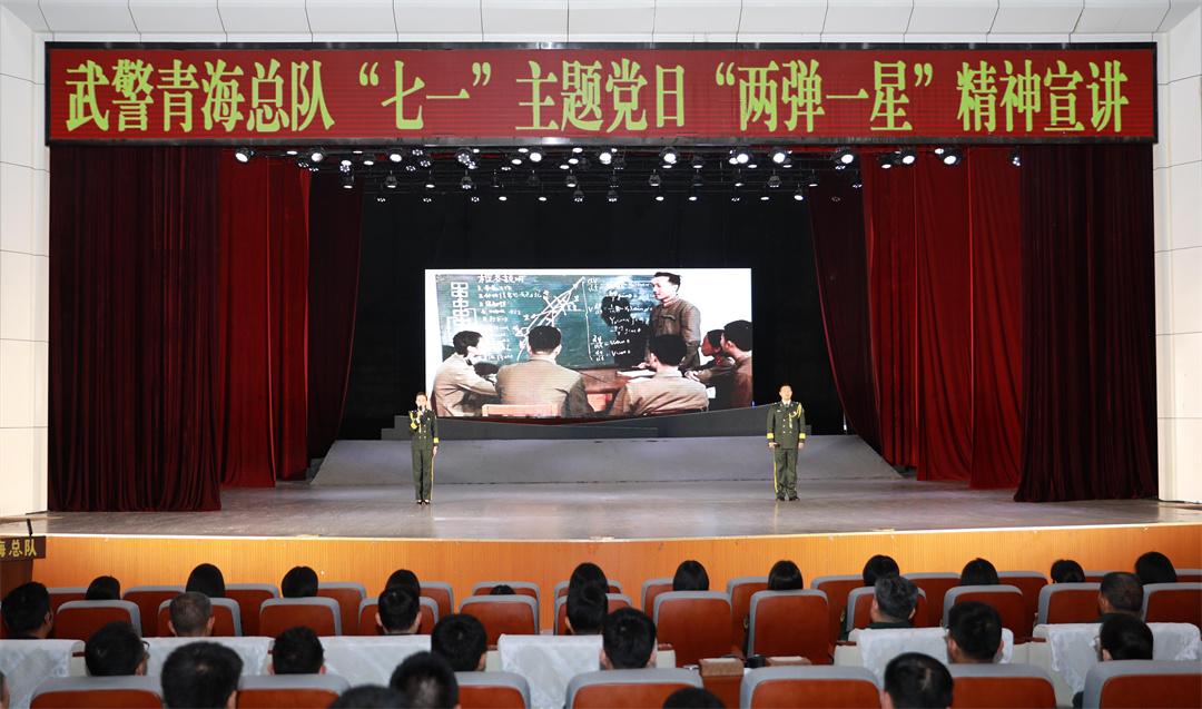在“七一”建黨節(jié)來臨之際,6月24日,中國原子城“兩彈一星”精神宣講團走進武警青??傟?,開展《永不褪色的金銀灘——“兩彈一星”精神永放光芒》主題宣講活動。