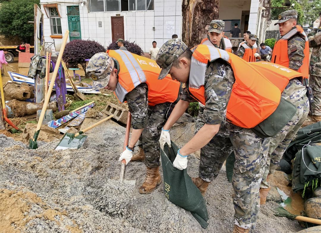 18時(shí)50分,武警百色支隊(duì)官兵依據(jù)預(yù)案出動(dòng)15名官兵,攜帶鐵鏟、鐵鎬、救生衣等各類搶險(xiǎn)救援裝備,采取摩托化方式機(jī)動(dòng)前往受災(zāi)地域,協(xié)助當(dāng)?shù)乜h政府擔(dān)負(fù)搶險(xiǎn)救災(zāi)任務(wù)。