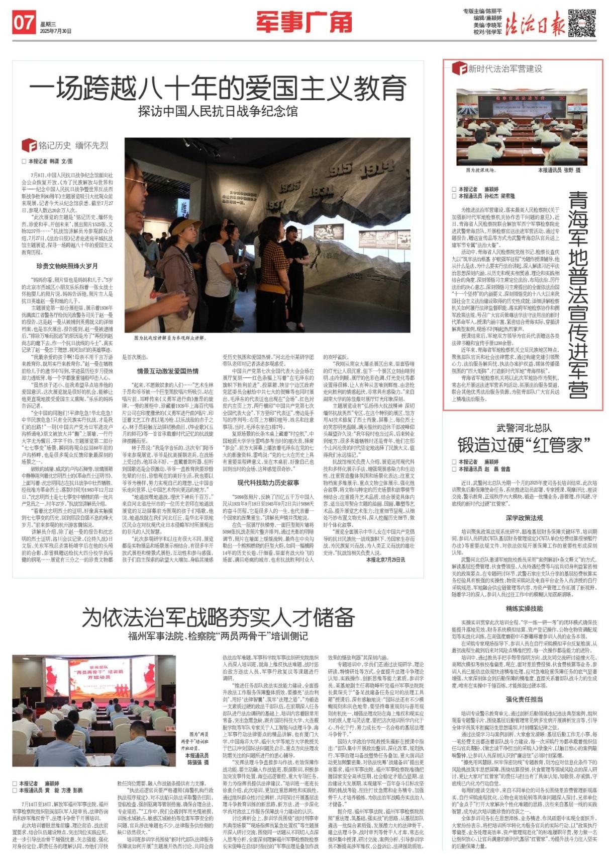 近年來,青海省軍地檢察機關(guān)立足民族地區(qū)特點,聚焦部隊官兵和社會法律需求,通過構(gòu)建黨建引領(lǐng)聚心力、法治服務(wù)解兵憂、執(zhí)法辦案護權(quán)益、媒體傳播強氛圍的“四大矩陣”,打造新時代軍地“青海樣板”。
