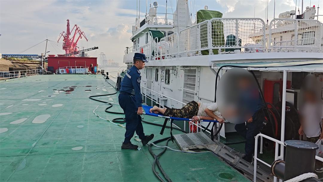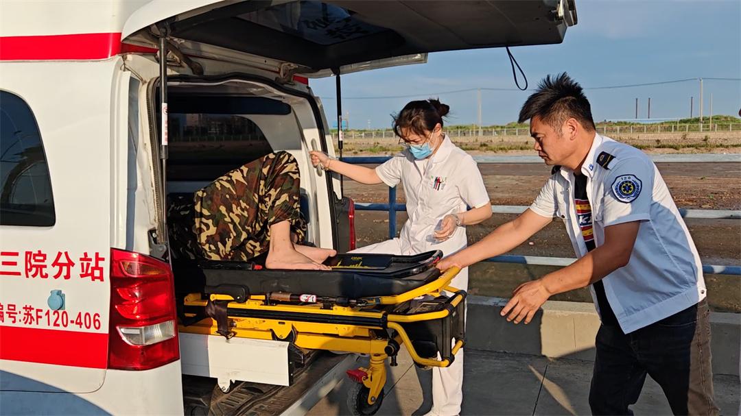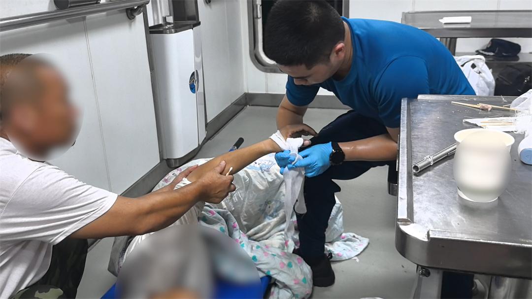 8日凌晨2時許,永隆艦抵達救助漁船,先將受傷漁民抬至擔架并進行基本固定,隨后成功將受傷漁民轉移至艦上,對其受傷部位進行消毒和包扎。返航期間,醫(yī)師密切觀察傷者生命體征,同時不斷安撫傷者情緒。經過一夜的緊急航行,永隆艦于8日6時許順利靠泊南通海警碼頭,成功將受傷漁民轉移至岸上接應的救護車并送往南通市海門區(qū)人民醫(yī)院救治。目前,受傷漁民生命體征平穩(wěn),正在接受進一步治療。