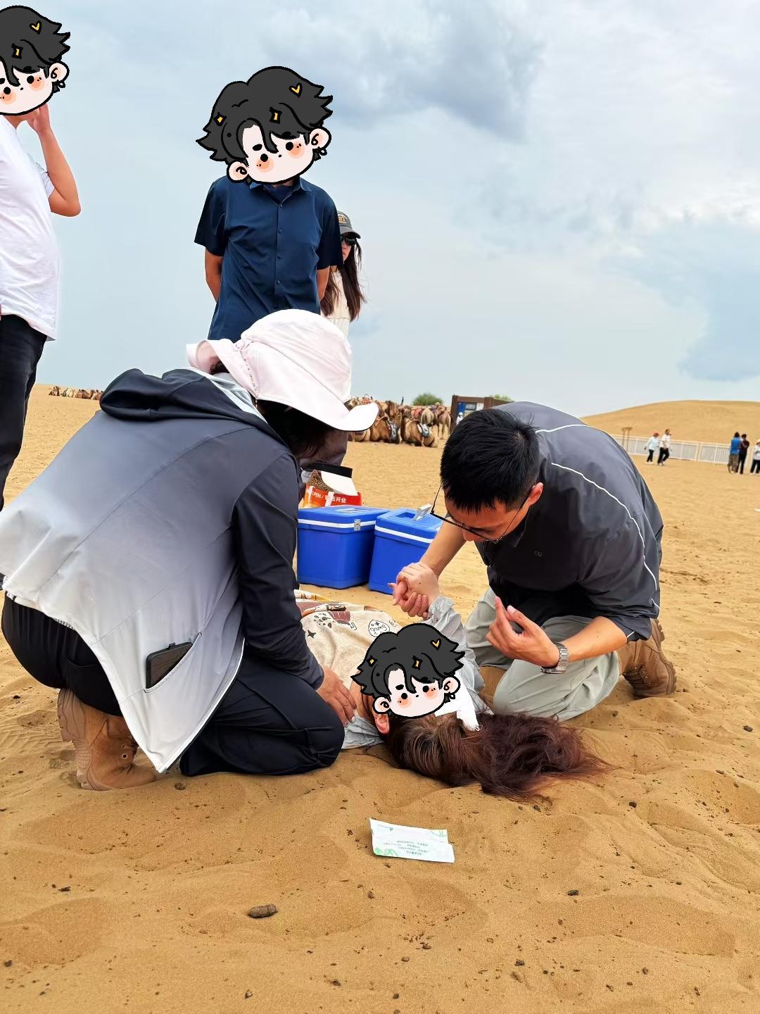 當(dāng)日下午,一名30多歲女游客帶著三歲兒子體驗(yàn)景區(qū)駱駝騎行項(xiàng)目時,因駱駝突然受驚失衡,母子二人從駝背上墜落倒地,情況十分危急。景區(qū)工作人員雖然第一時間抵達(dá)現(xiàn)場,但因缺乏專業(yè)醫(yī)療知識,無法及時進(jìn)行有效救治。