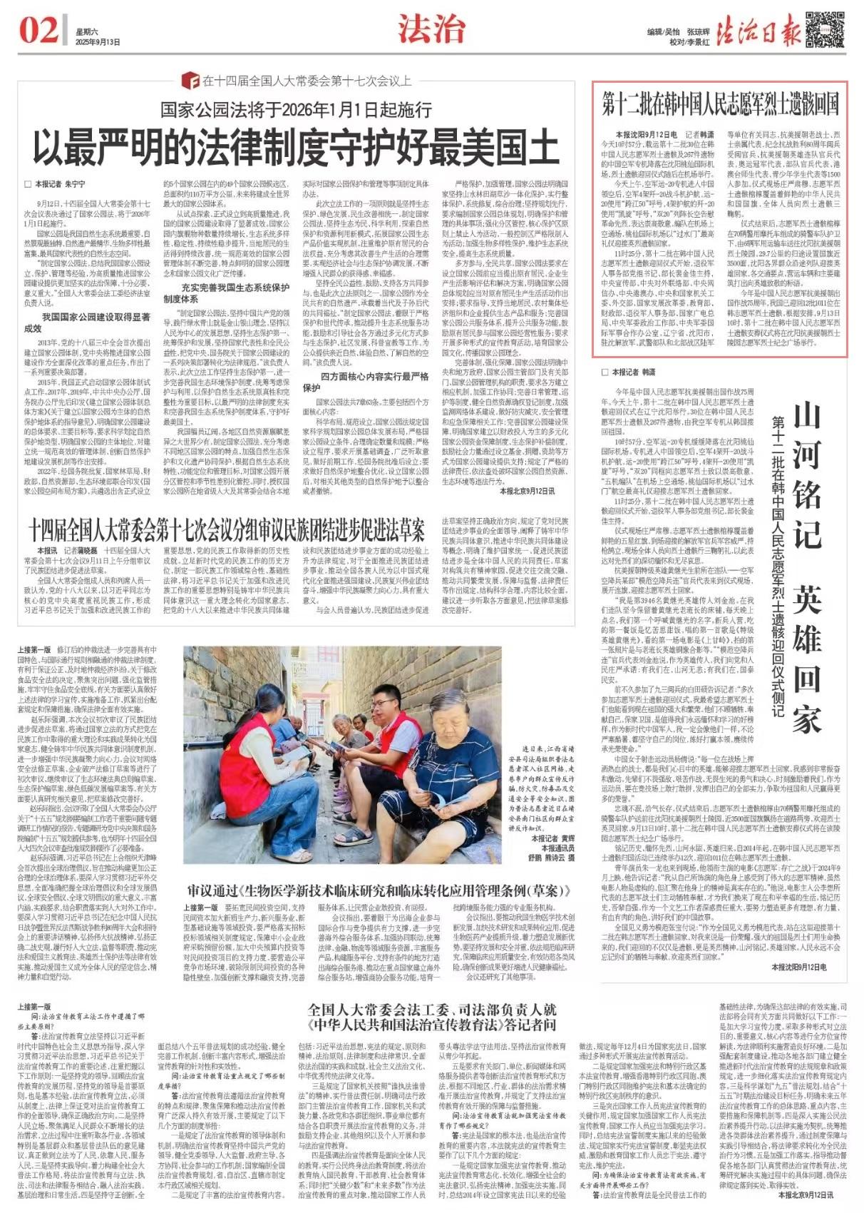今年是中國人民志愿軍抗美援朝出國作戰(zhàn)75周年,我國已迎回12批1011位在韓志愿軍烈士遺骸。根據(jù)安排,9月13日10時,第十二批在韓中國人民志愿軍烈士遺骸安葬儀式將在沈陽抗美援朝烈士陵園志愿軍烈士紀(jì)念廣場舉行。