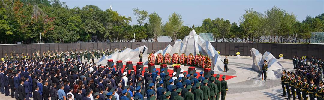 9月13日10時,安葬儀式開始。陵園下沉式紀(jì)念廣場環(huán)形烈士英名墻下,擺滿黃白相間的菊花,參加儀式的人們肅穆站立。軍樂隊奏響婉轉(zhuǎn)低回的《思念曲》,在解放軍儀仗司禮大隊官兵持槍護(hù)衛(wèi)下,禮兵們邁著整齊的步伐,護(hù)送志愿軍烈士遺骸棺槨緩步進(jìn)入紀(jì)念廣場,全場奏唱中華人民共和國國歌。