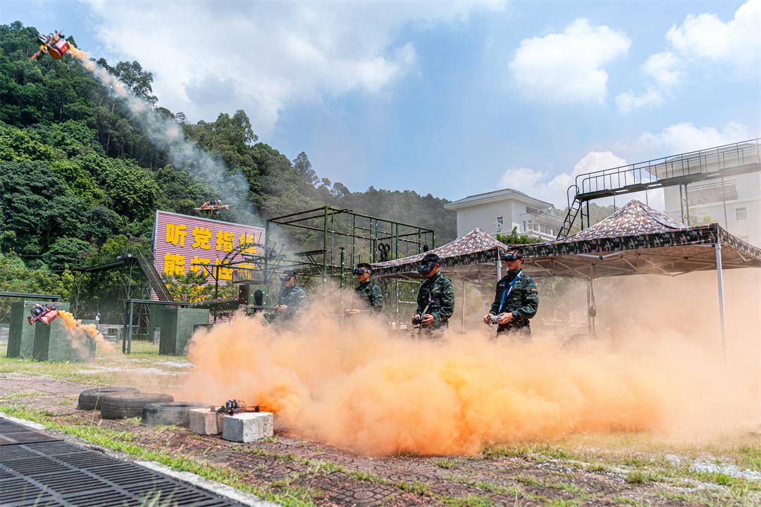 在陣陣喝彩聲中,高樓攀登、索降、無人機(jī)打擊目標(biāo)、火焰噴射器使用等課目陸續(xù)展開。綠茵場上一時(shí)殺聲震天,火舌躍動,硝煙彌漫。