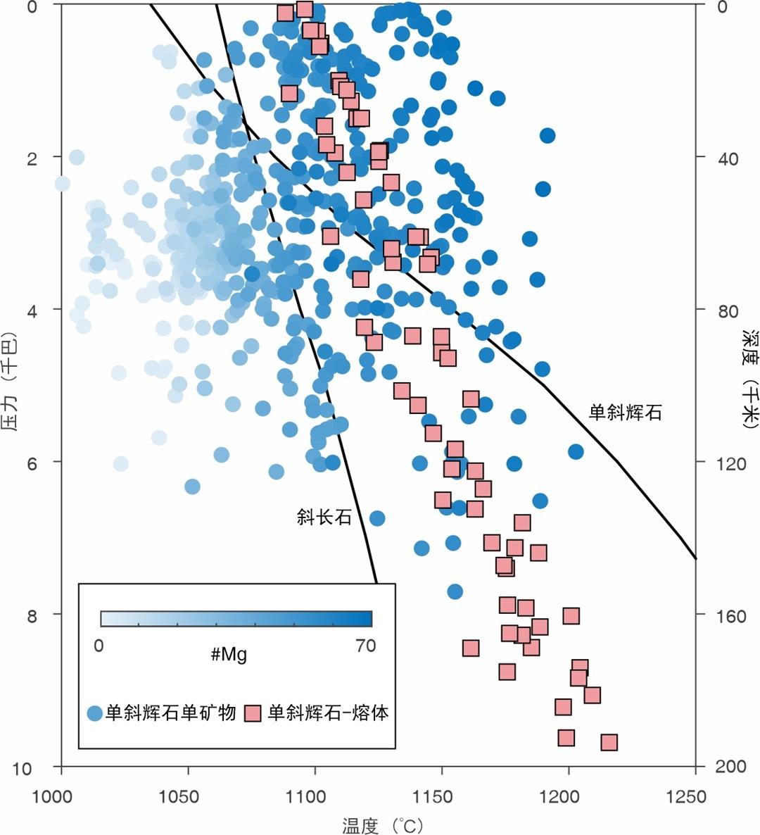 圖為單斜輝石單礦物、單斜輝石-熔體溫壓計(jì)溫度壓力計(jì)算及巖石學(xué)模型模擬。