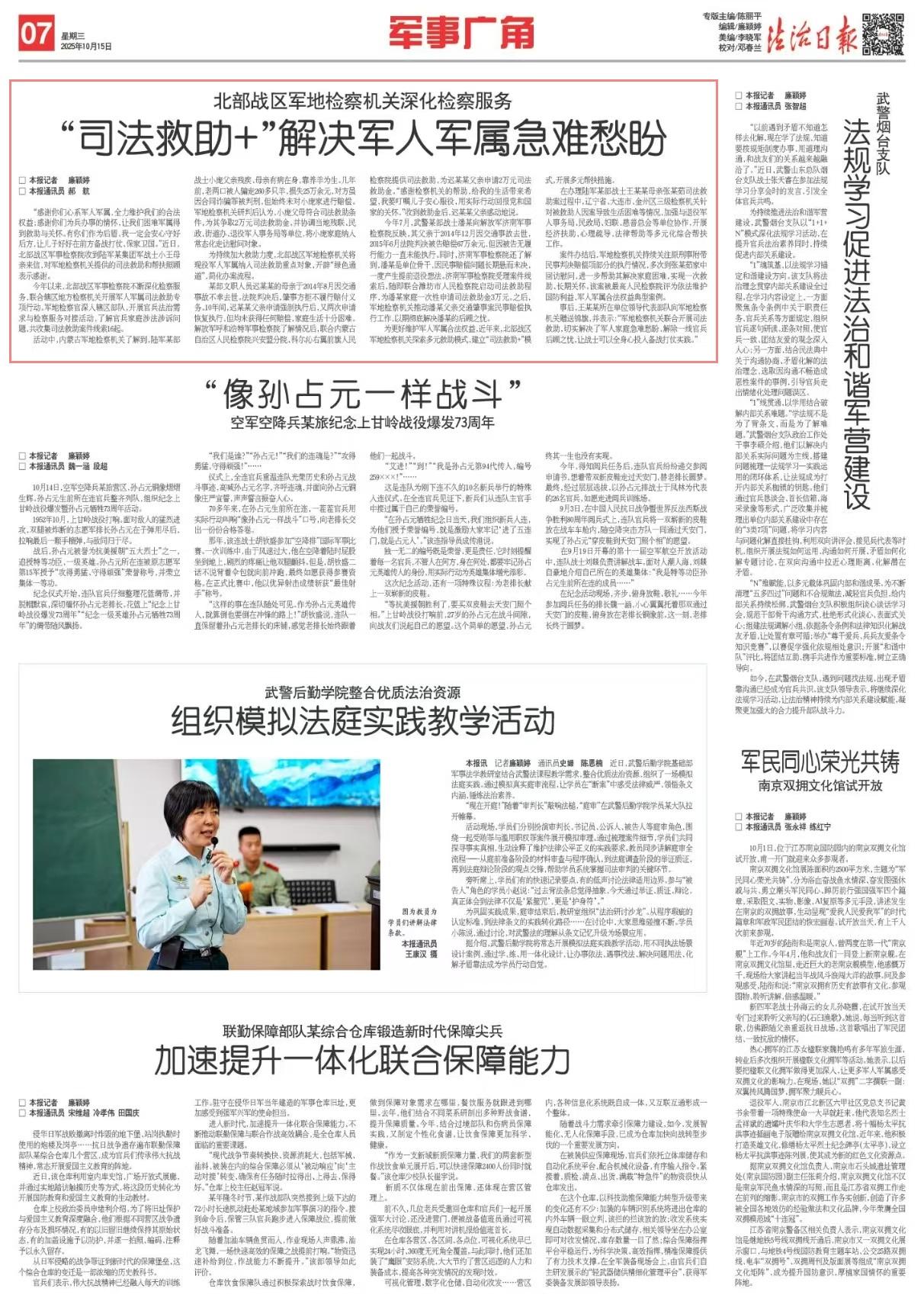 為持續(xù)加大救助力度,北部戰(zhàn)區(qū)軍地檢察機(jī)關(guān)將現(xiàn)役軍人軍屬納入司法救助重點(diǎn)對象,開辟“綠色通道”,簡化辦案流程。