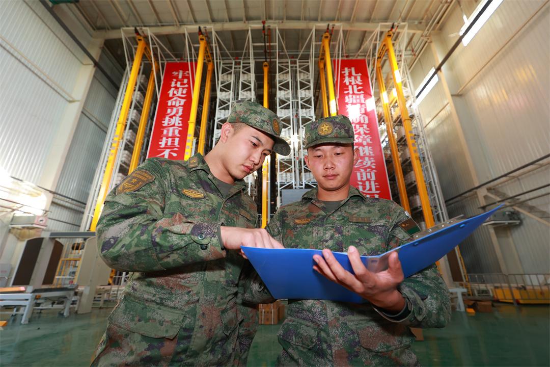 在被裝供應(yīng)保障現(xiàn)場,官兵們依托立體庫儲存和自動(dòng)化系統(tǒng)平臺,配合機(jī)械化設(shè)備,有序輸入指令。緊接著,質(zhì)檢、清點(diǎn)、出貨,滿載“特急件”的物資很快從倉庫發(fā)出。