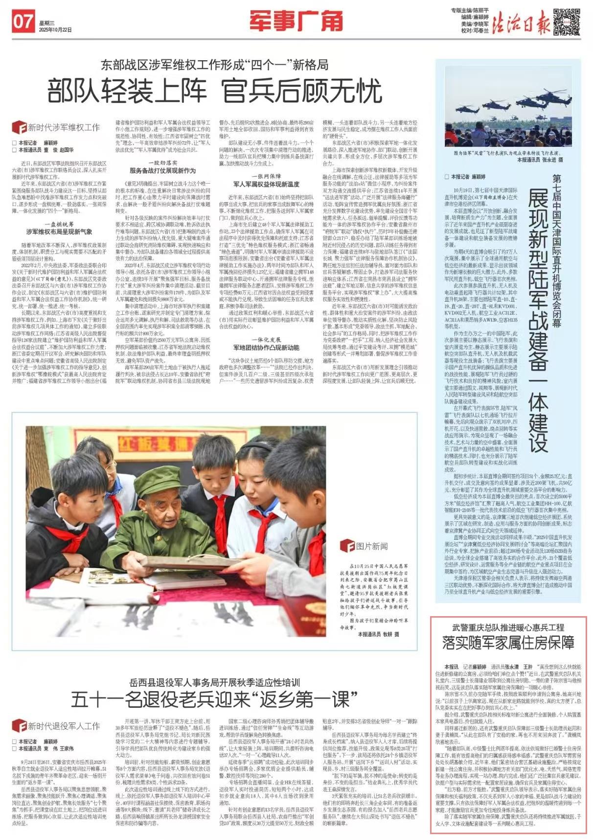 除了落實(shí)隨軍家屬住房保障,武警重慶總隊(duì)還將持續(xù)推進(jìn)軍屬就醫(yī)、子女入學(xué)、文體設(shè)施配套建設(shè)等一系列暖心惠兵工程。