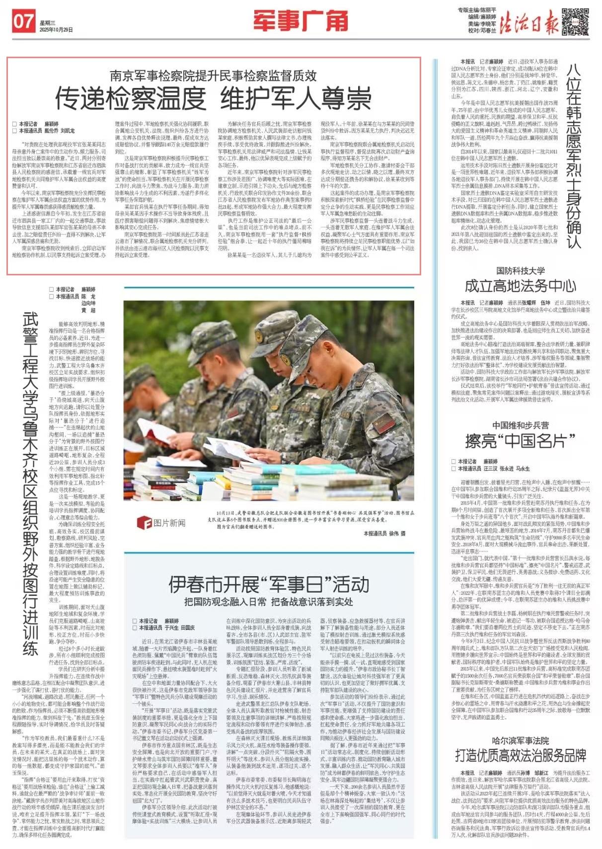 今年以來,南京軍事檢察院充分發(fā)揮民事檢察在維護軍人軍屬合法權(quán)益方面的優(yōu)勢作用,為提升軍人軍屬尊崇感獲得感貢獻檢察力量。