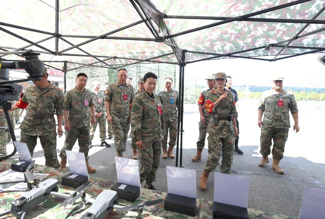 圖為觀摩特色民兵分隊無人飛行設備。