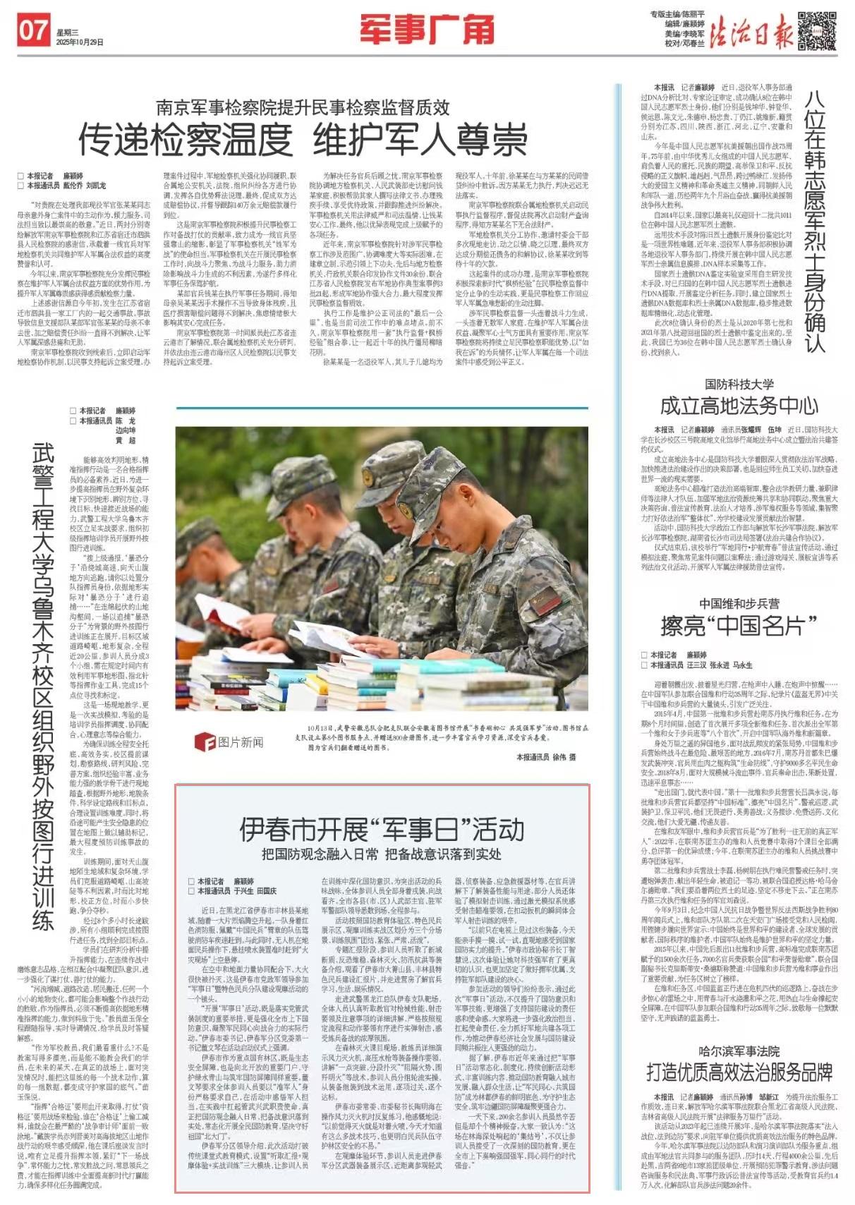 “開展‘軍事日’活動,既是落實黨管武裝制度的重要舉措,更是強化全市上下國防意識、凝聚軍民同心向戰(zhàn)合力的實際行動?!币链菏形瘯?、伊春軍分區(qū)黨委第一書記董文琴在活動啟動儀式上強調(diào)。