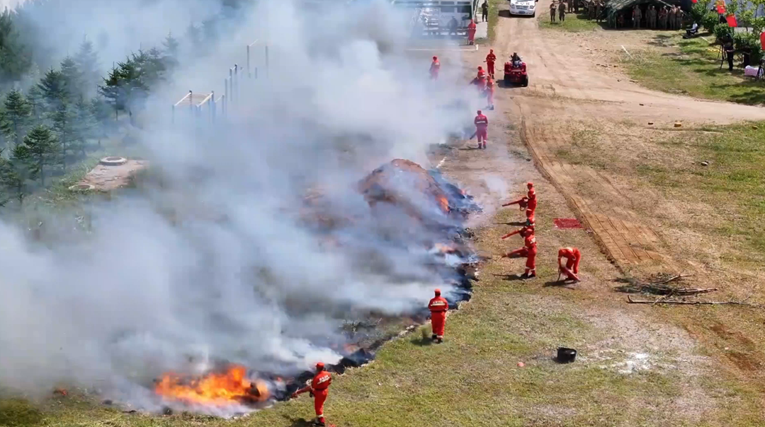 在空中和地面力量協(xié)同配合下,大火很快被撲滅。這是伊春市黨政軍領(lǐng)導參加“軍事日”暨特色民兵分隊建設觀摩活動的一個鏡頭。