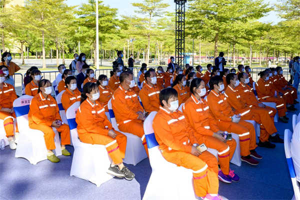 活動現(xiàn)場對全市從事一線環(huán)衛(wèi)工作累計時長超過5年的100名優(yōu)秀環(huán)衛(wèi)工人進行褒揚,10名優(yōu)秀環(huán)衛(wèi)工人代表上臺領(lǐng)獎。他們以實際行動譜寫了新時代的勞動者之歌,為深圳創(chuàng)建全國文明城市,創(chuàng)建美好的城市環(huán)境作出了重要貢獻。