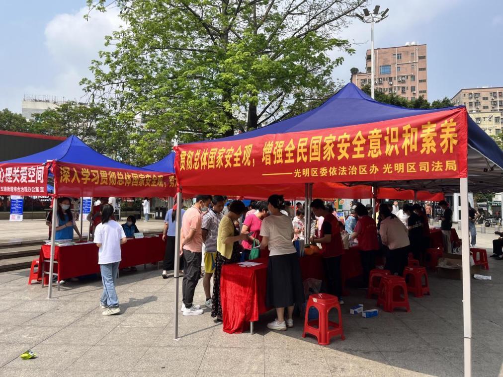 光明區(qū)委政法委聯(lián)合區(qū)司法局、玉塘街道辦等10家單位在轄內(nèi)黨建公園,圍繞“貫徹總體國家安全觀,增強全民國家安全意識和素養(yǎng),夯實以新安全格局保障新發(fā)展格局的社會基礎”這一主題,向過往的群眾就什么是國家安全、危害國家安全的行為、公民應如何維護國家安全等內(nèi)容開展宣傳教育。