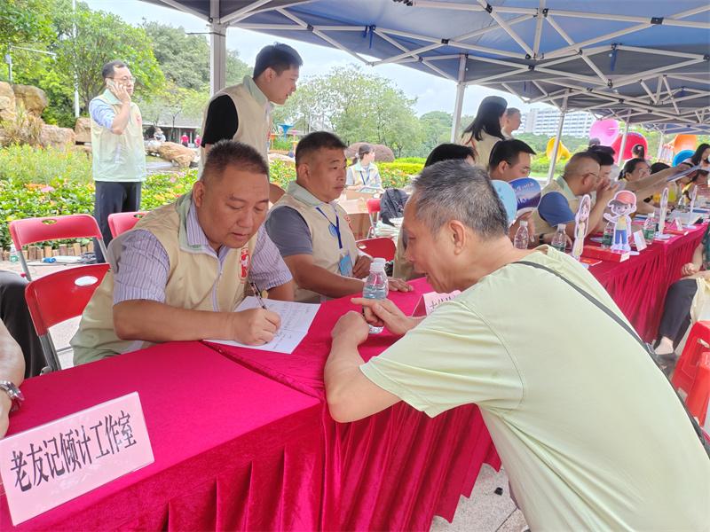 在活動現(xiàn)場,有一隊“志愿馬甲”格外亮眼,他們是來自廣東省信訪春雨志愿服務(wù)隊、廣州“穗信連心”志愿服務(wù)隊的信訪志愿者,以及來自大德、穗星、廣愛、普愛、北斗星等社工服務(wù)機構(gòu)的信訪社工。他們身著各自特色標識服裝,在現(xiàn)場“擺攤設(shè)點”,面對面服務(wù)群眾,對有疑問的群眾提供現(xiàn)場咨詢,對有訴求的群眾幫助梳理訴求,以真誠溝通、真情服務(wù)換來群眾的滿意點贊。