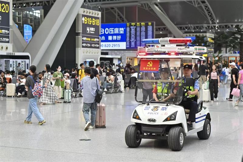 節(jié)日期間,廣鐵公安秉持“警力跟著客流走、警情走”原則,依托客流實(shí)時(shí)監(jiān)測(cè)系統(tǒng),科學(xué)動(dòng)態(tài)研判大客流風(fēng)險(xiǎn)點(diǎn),優(yōu)化警力配置,加大進(jìn)站口、候車室、出站口等重點(diǎn)區(qū)域巡邏頻次。協(xié)同客運(yùn)部門做好客流疏導(dǎo),保障旅客平安乘降。其中,廣州站派出所與廣州地鐵、越秀公安廣場(chǎng)派出所建立聯(lián)動(dòng)機(jī)制,強(qiáng)化瞬時(shí)大客流應(yīng)對(duì)和路地聯(lián)合處突準(zhǔn)備;廣州白云站派出所聯(lián)合白云公安、交警、運(yùn)政等部門開展聯(lián)合執(zhí)法,整治帶客進(jìn)站、代客刷票、叫客拉客等治安頑疾。